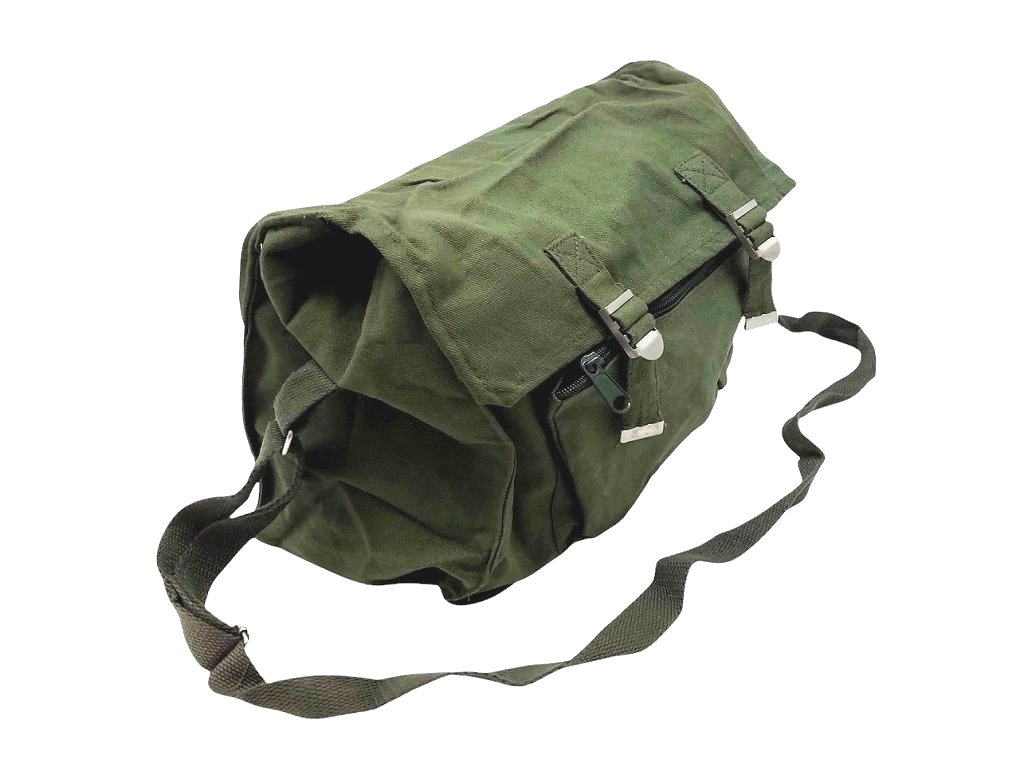borsa a cartella in tela canvas verde. dimensioni: 34x28 cm, ampiezza laterale 14 cm. fornita di tracolla regolabile larga 2,5 cm, di tasca davanti co ...