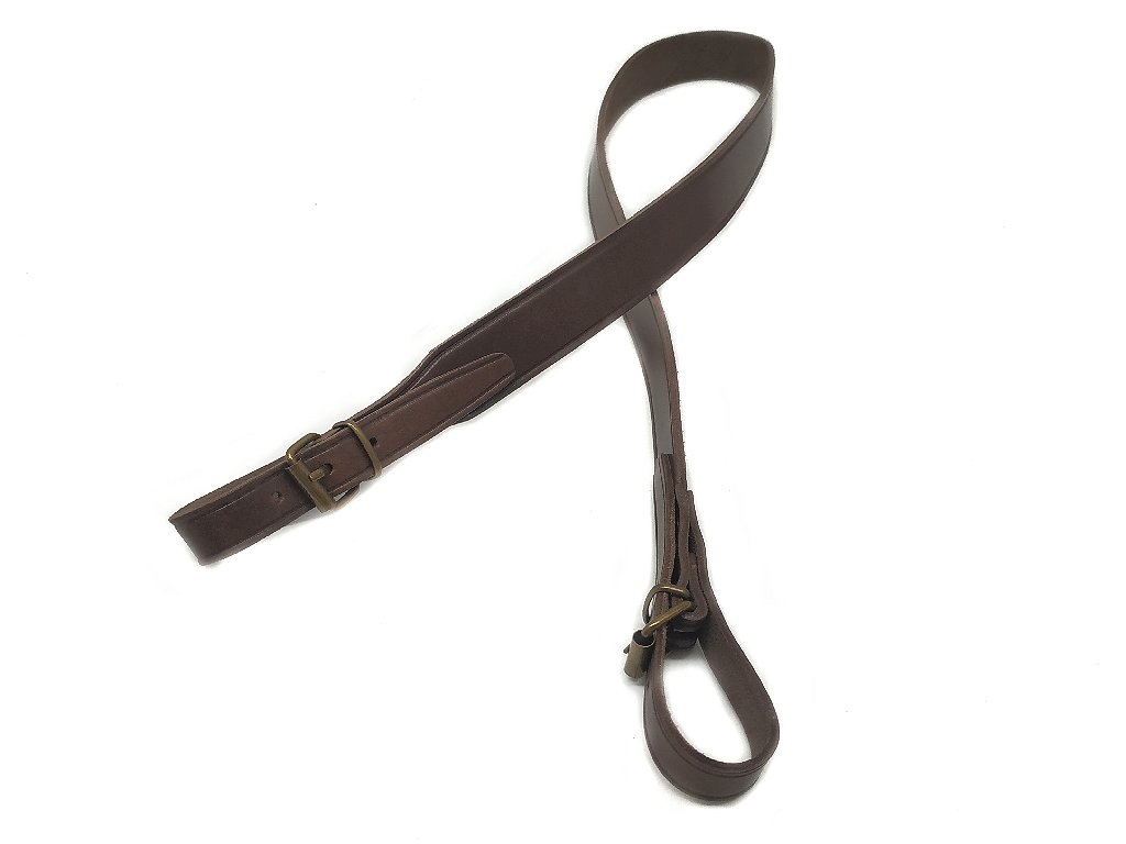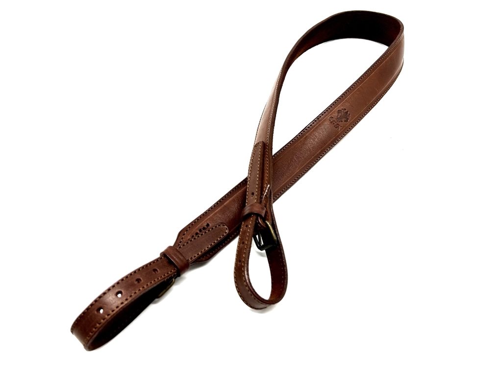 bretella porta fucile in cuoio cucita a mano. larghezza 2,8 cm, lunghezza massima 93 cm. prodotto in italia. peso lordo: 134 grammi