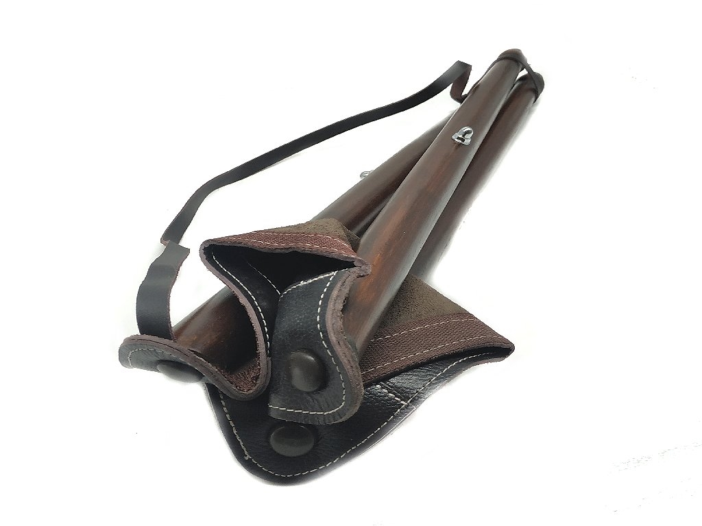 Sgabello con sedile in pelle, con tracolla regolabile in pelle, con tre piedi in legno. Dimensioni sedile aperto 36x36 cm. Altezza 75 cm. Peso lordo: 1865 grammi