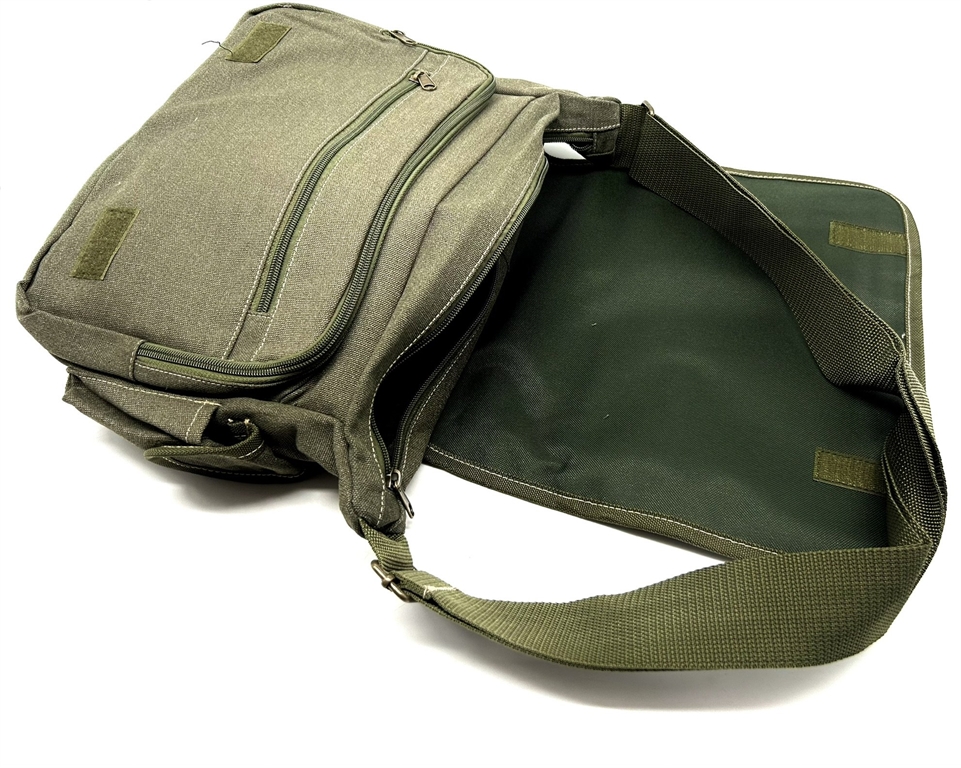 Borsa in canapone multi uso. Ampio vano principale chiudibile con cerniera, foderato in nylon lavabile, che può essere usato come carniere, taschino interno porta documenti a zip. Vano anteriore sempre con cerniera. Due ampie tasche con zip una sul davanti, l altra posteriore. Pattina di chiusura con taschini. Ulteriori taschini sui lati. Larga tracolla regolabile, in fibra di nylon. Dimensioni: 40x27x13 cm. Peso lordo: 485 grammi.