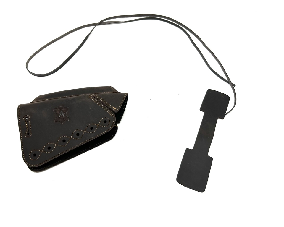Guanciale in pelle per calcio fucile per alzare la piega 28 mm cucito con morbido cuscinetto in pelle per appoggio guancia, chiusura con laccio cuoio. Ideale per chi utilizza carabina con cannocchiale montato. Prodotto in Italia. Peso lordo: 165 grammi.