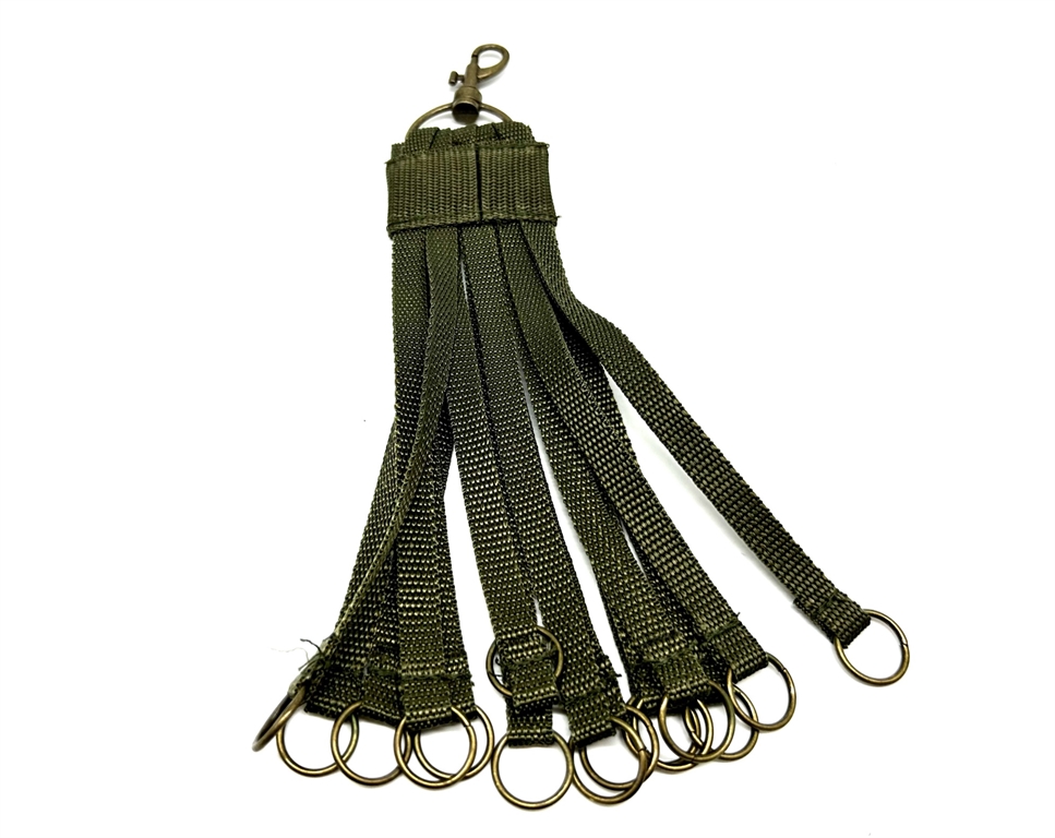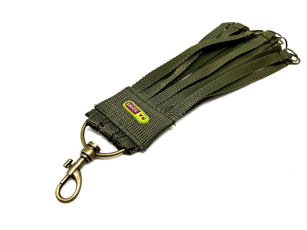 Appendiselvaggina nylon con 15 anelli e moschettone in metallo. Lunghezza 28 cm. Peso lordo: 62 grammi.