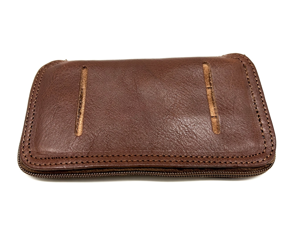 Porta strozzatori in pelle morbidissima, chiusura con cerniera e passanti per cintura altezza 5,5 cm. Dimensioni da chiuso: lunghezza 10 cm, larghezza 18 cm. Prodotto in Italia. Peso lordo: 170 grammi