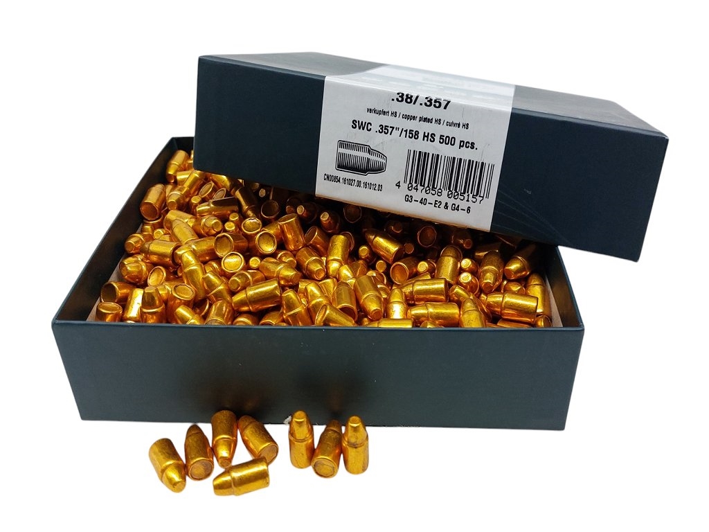 Palla H&N sport in piombo ramato calibro 38/357, 158 grani swc, trafilatura .357/9,07 mm diametro, peso 10,24 grammi. Confezione 500 pezzi. Prodotto in Germania. Peso lordo: 5265 grammi.