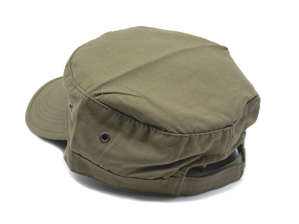 Berretto cambogiano in tessuto retinato. 100% cotone. Misura regolabile con strip. Colore verde militare. Peso lordo: 65 grammi.