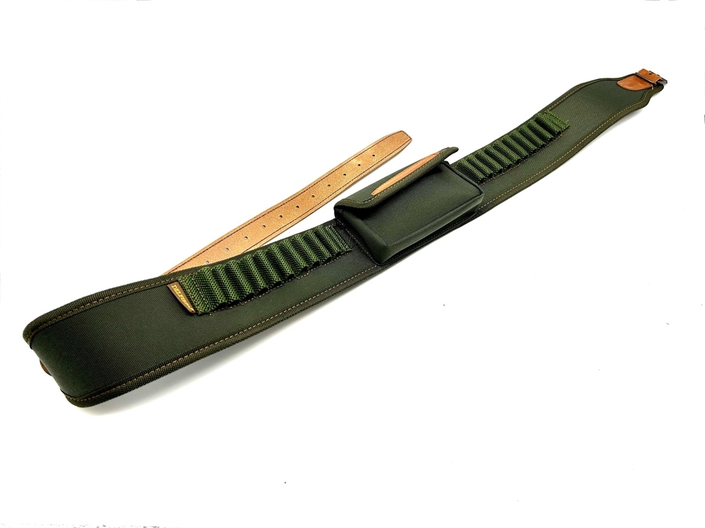 Cartuccera in cordura per carabina con borsa e 20 celle elastiche. Lunghezza girovita massima 120 cm, larghezza 8,5 cm. Larghezza della borsa 14 cm e chiusura a strip. Peso lordo: 195 grammi. Prodotto in Italia.