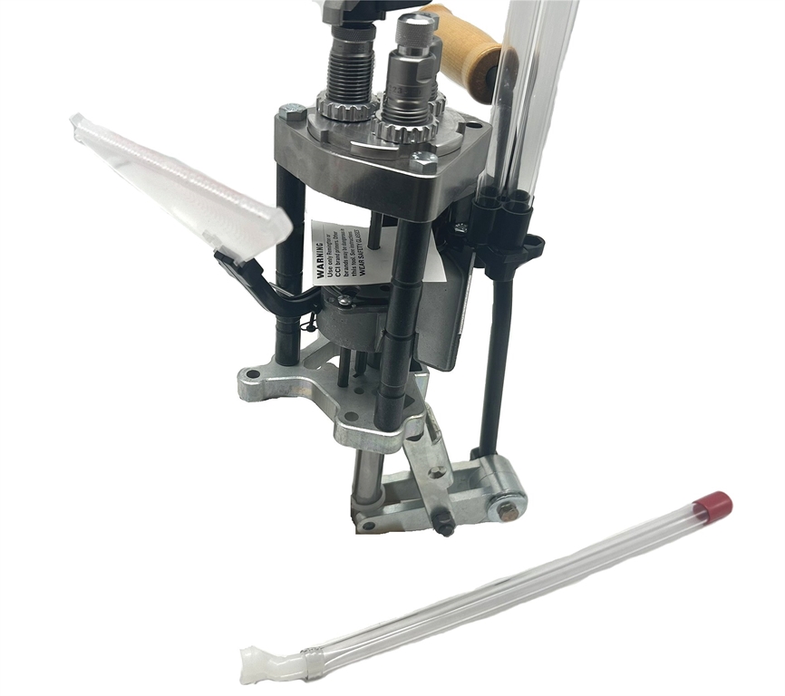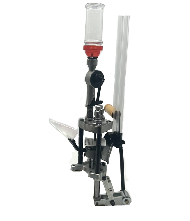 Strumento ideale per la ricarica di munizioni per pistola e carabina di piccolo calibro. La pressa Pro 1000 è completamente automatica. La leva è reversibile destra/sinistra e la sua posizione può essere regolata. Dotata di dosatore per la polvere, alimentatore bossoli, set 3 dies calibro 223. Imbuto raccoglitore bossoli non in dotazione. Podotto in USA. Peso lordo: 6525 grammi.