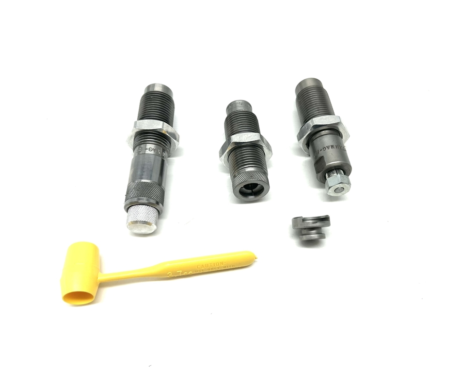 Lee 6 mm rem pacesetter 3 die set include: misurino in platica per polvere, reggibossolo ( shell holder ), il die che ricalibra il bossolo e espelle l'innesco spento ( sizing die ), il die che inserisce la palla e restringe le pareti del bossolo ( seating die ), il die che rettifica le munizioni ottenute eliminando eventuali sovradimensionamenti dovuti al diametro abbondante della palla ( factory crimp die ), la scatola in plastica e le istruzioni in inglese. Utilizzabili anche su presse di marca Dillon e Lyman. Prodotto in USA. Peso lordo: 563 grammi.