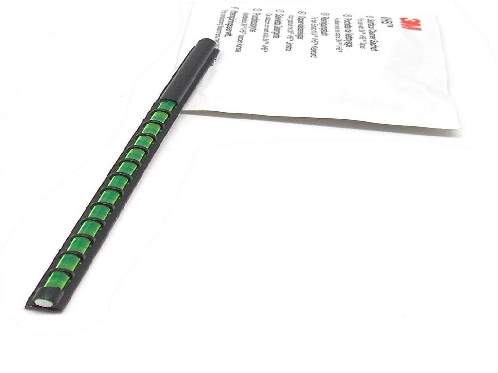 Mirino in fibra ottica verde con supporto adesivo in alluminio hi-tech, semplice da installare. Permette di sparare con entrambi gli occhi aperti, guadagnando in rapidità e precisione. Misura: 3x120 mm (tiro). Dotato di panno pulitore con alcool. Peso lordo: 25 grammi.