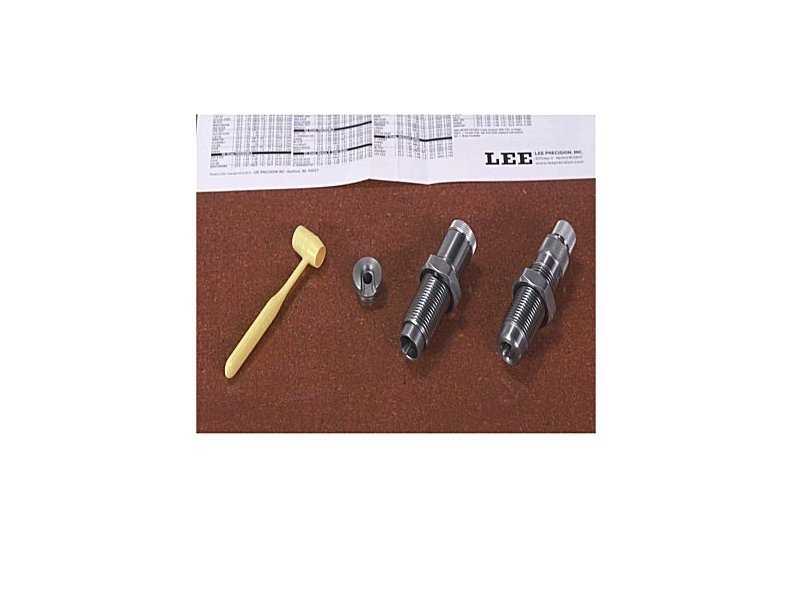 Lee 7.55x55 swiss collet die set comprende matrice per disinnescare e rettificare il colletto del bossolo, matrice per l'inserimento palla, portabossolo, misurino volumetrico, istruzioni. Prodotto in USA. Peso lordo: 467 grammi.
