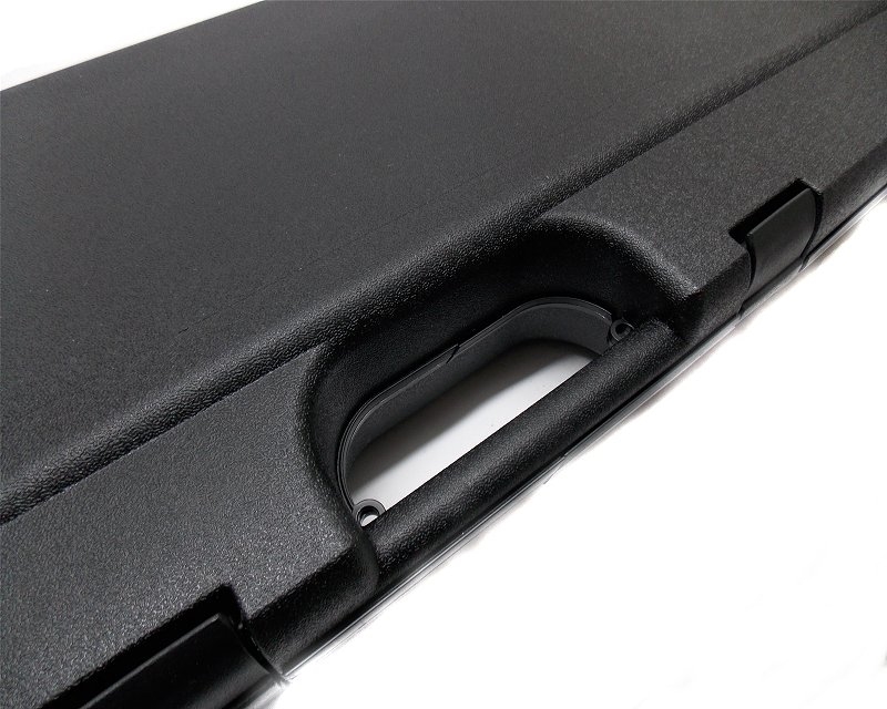 Valigetta Negrini in polipropilene nera. Internamente imbottita e rivestita in morbido velluto rosso, con interno termoforrmato. Valigetta per sovrapposto con canne fino a 78 cm. Dotata di quattro chiusure push-pull, con possibilità di mettere due lucchetti (non in dotazione). Misure interne: 78x24,5x7,5 cm. Peso lordo: 2170 grammi. Prodotto in Italia.