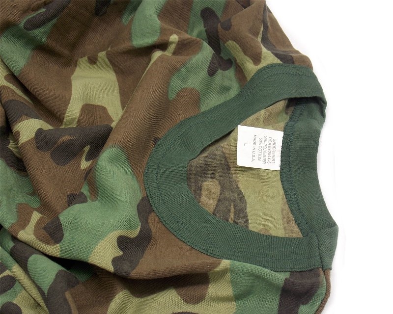 Maglietta girocollo, misto cotone (50% cotone e 50% poliestere), a maniche corte. Colore mimetico. Misure disponibili: S, M, L, XL. Prodotto in USA. Peso lordo: 220 grammi