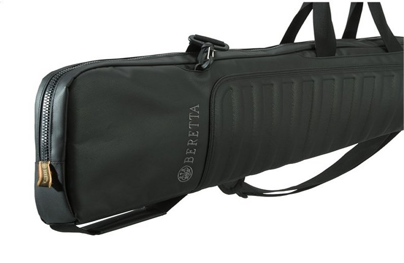Fodero porta fucile in resistente poliestere idrorepellente resistente ed antigraffio. Assoluta funzionalità e molteplici possibilità di utliizzo per le necessità del tiratore. Dotato di tracolla removibile, manici per il trasporto e di due tasche esterne con strip. Con imbottitura antishock. L'inserto in EVA serve a proteggere la bascula. Con logo beretta in rilievo. Cerniera con tira zip, personalizzati e lucchettabili.Tasca per il calcio e cinghia interna per fissare il fucile. Dimensioni interne: lunghezza 125 cm, larghezza massima 20 cm. Per fucili lunghi massimo 125 cm. Colore nero. Peso lordo:1470 grammi