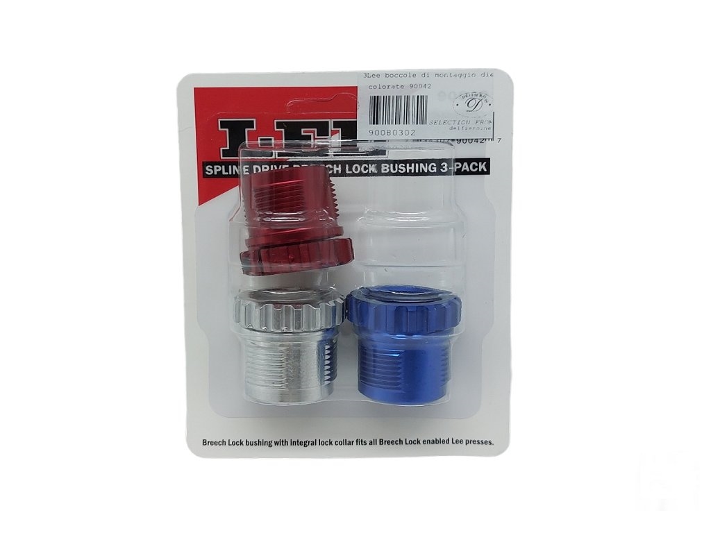 Boccole in metallo colorato con anello di fermo per facilitare l'identificazione e il montaggio rapido del die. Confezione da 3 pezzi di colore diverso. Boccole che possono essere montate su i seguenti modelli di pressa Lee: breech lock challenger, breech lock classic cast e pressa breech lock hand. Prodotto in USA. Peso lordo: 58 grammi