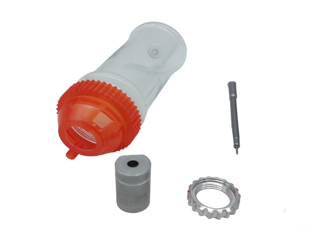 Il kit di disinnesco è composto da un contenitore in plastica, da un'asta decapsulatrice in metallo e da un'anello in alluminio. Il kit per pressa APP è semplice da installare, è sufficiente sostituire l'inserto di innesco (piccolo o grande) con l'inserto "DEPRIME", sostituire l'asta di spinta dell'innesco con il decapsulatore e sei pronto per togliere il vecchio innesco. Prodotto made in Usa. Peso lordo: 150 grammi.