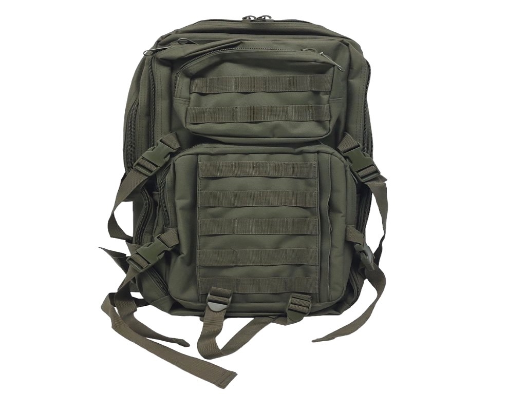 Dimensioni dello zaino tattico: 28 x 47 x 28cm (LxHxP). Capacità: 35 litri. Lo zaino militare è realizzato in tessuto di nylon di colore verde militare, resistente e impermeabile. Lo zaino presenta cerniere resistenti con doppia cucitura, con pratici tiranti in corda, una comoda imbottitura sulla schiena, con rete traspirante. Spallacci imbottiti, regolabili. Apertura totale con cerniera. Dotato di sistema Molle. Pieno di punti di montaggio all'esterno dello zaino tattico per aggiungere quanto serve, progettato per essere utilizzato in combinazione con altre attrezzature, è possibile caricare sacche, accessori e altro. Dotato di scomparti multipli e tasche con cerniera, incluse tasca interna con cerniera e tasca in rete, consente di mettere quasi tutto il necessario all'interno. Predisposto per inserire le borse idratante. Peso lordo: 1320 grammi.