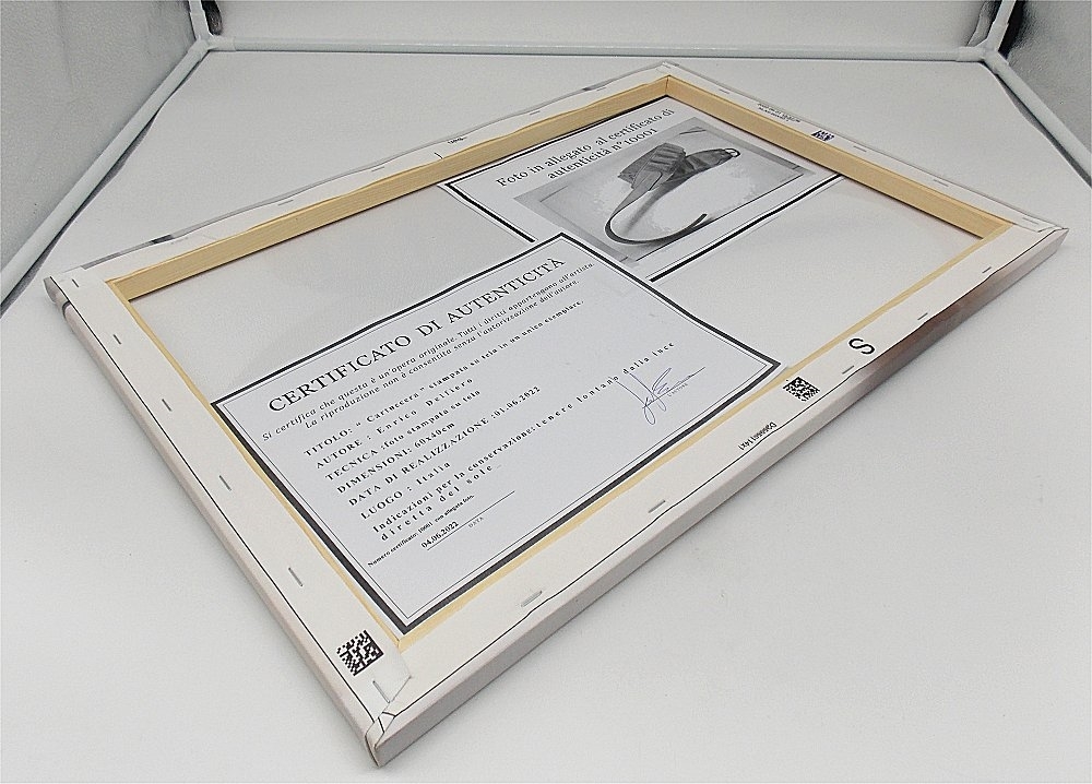 Stampa di foto su tela 60x40 in unico esemplare con certificato di autenticità .Prova di foto scattata all'interno del box fotografico dall'autore Delfiero Enrico, con una prova di impostazione inconsueta che si presta alla libera interpretazione della bellezza universale. L'interpretazione dell'autore è la straordinaria bellezza che esce da questo particolare e controverso oggetto di uso venatorio.