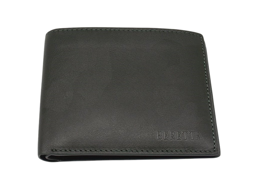 Portafoglio realizzato in 100% pelle con fodera in poliestere. Caratterizzato dal motivo camo stampato sulla pelle con una tecnica 3D. All'interno ci sono 10 scompartimenti per carte, e due scompartimenti per banconote. Colore verde. Dimensioni da chiuso: 11x9,5 cm. Prodotto in India. Peso lordo: 135 grammi.