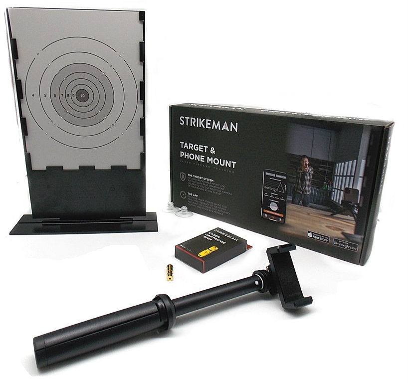 Il bersaglio Strikeman è composto da un bersaglio in plastica, un supporto in plastica per cellulare, da una cartuccia laser calibro 9 mm in metallo, e da un manuale in italiano per l'utilizzo. Scaricando l'APP STRIKEMAN (su Google Play o su App Store) sarà possibile visualizzare sul proprio smartphone i risultati dei tiri fatti utilizzando un'arma vera. Il bersaglio è utile per allenarsi in luoghi chiusi, anche all'interno della propria abitazione. Dimensioni del bersaglio: 22x38 cm. Dimensioni della base del bersaglio: 28x9x0,4 cm. Peso lordo: 978 grammi. Video a questo link : https://www.youtube.com/watch?v=p3bYTfxsOd0
