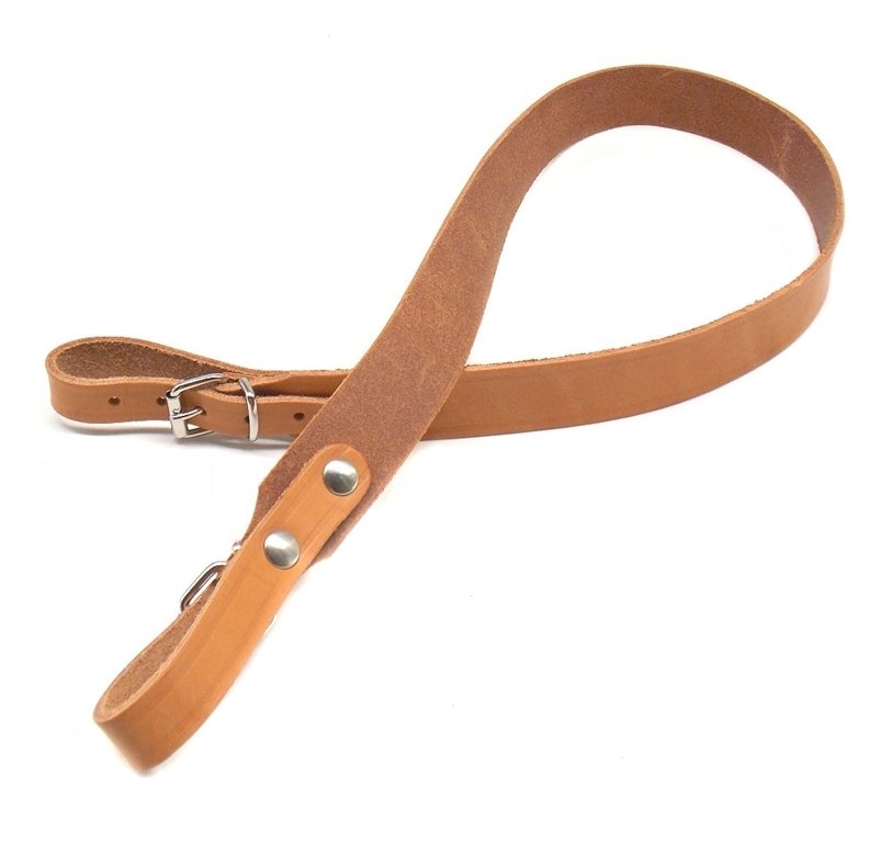 Bretella porta fucile in cuoio vacchetta colore naturale. Larghezza 3 cm, lunghezza totale 94 cm con fibbia montata a centro fori. Peso lordo: 95 grammi. Prodotto in Italia.