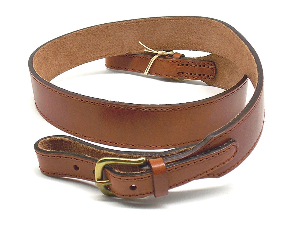 Bretella in cuoio marrone foderata, cucita a mano. Larghezza 35 mm, lunghezza massima 122 cm. Peso lordo: 185 grammi. Prodotto in Italia.
