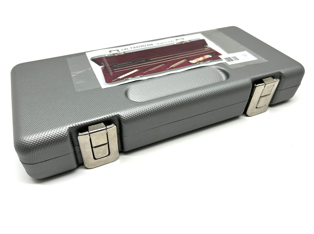 Kit di pulizia per i seguenti calibri: 7,62/30/308. La valigetta contiene un bacchettone con manico smontabile in tre pezzi, tre scovoli, tubetto da 25 ml di olio lubrificante protettivo. Dimensioni della valigetta in plastica rigida: 30x13x4,5 cm. Peso lordo: 505 grammi. Prodotto in Italia.
