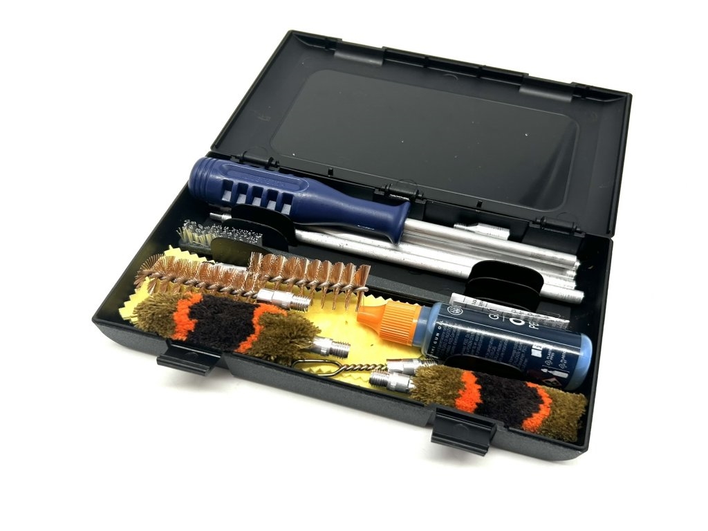Kit di pulizia per fucili calibro 12 e 20. Il Kit contiene: impugnatura bacchetta Nettatoia, bacchette in alluminio, scovolini in lana, scovolini in bronzo (3 pezzi). Adattatore, olio detergente e lubrificante, straccetti in cotone gialli, spazzolino in nylon. Peso lordo: 300 grammi.