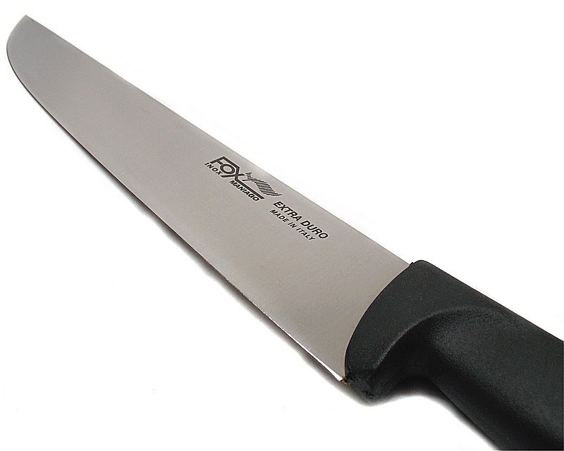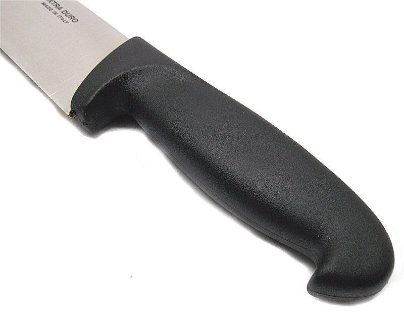 Coltello da cucina. Lunghezza lama inox 26 cm, lunghezza totale 39 cm, larghezza lama 4,5 cm. Manico in polipropilene più gomma naturale. Prodotto in Italia. peso lordo: 228 grammi.