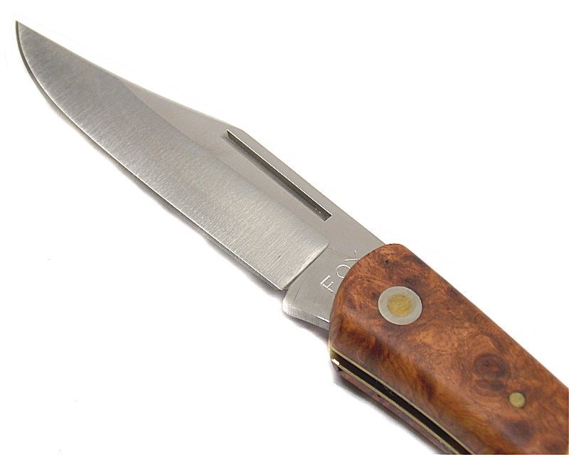 Coltello sportivo. Lunghezza lama 8 cm, lunghezza totale 19 cm, larghezza lama 2 cm. Manico in radica di betulla. Prodotto in Italia. Peso lordo: 105 grammi.