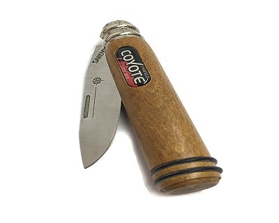 Coltello sportivo. Lunghezza lama 8 cm, larghezza lama 1,8 cm, lunghezza totale aperto 19 cm. Manico in legno. Dotato di cavatappi. Peso lordo: 52 grammi.
