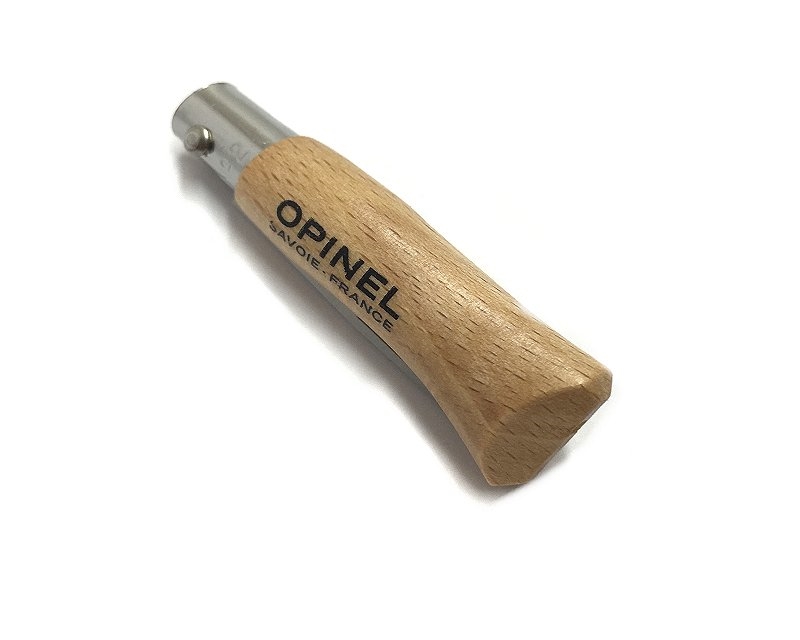 Coltello sportivo. Coltello chiudibile con lama in acciaio inox. Manico in legno chiaro stagionato a forma leggermente anatomico. Lunghezza lama 3 cm, lunghezza totale aperto 8 cm, larghezza lama 0,8 cm. Prodotto in Francia. Peso lordo: 5 grammi.