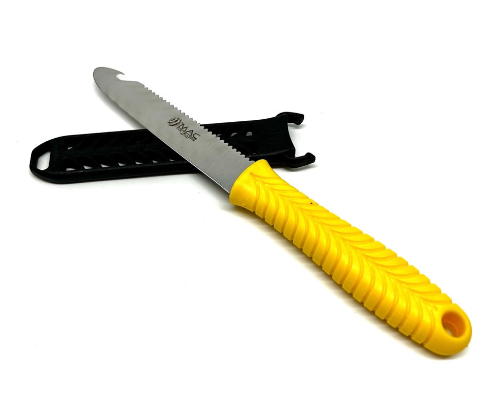 Coltello sportivo. Lunghezza lama 12 cm, larghezza lama 2,3 cm, lunghezza totale 24 cm. Con lama in acciaio inox di spessore 1,4 mm con squamatore. Manico in polimero. Dotato di fodero in polimero. Prodotto in Italia. Peso lordo: 70 grammi