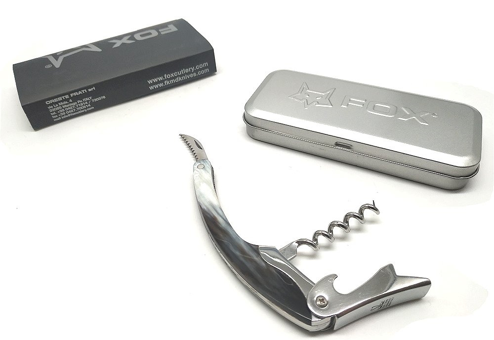 Cavatappi Professionale a Doppia Leva DUE CIGNI, con apribottiglie, levatappi, spirale a 5 giri e lama con seghettatura affilata tutte in acciaio inox. Manico in vero corno nero. Lunghezza del cavatappi chiuso: 12 cm. Fornito con un elegante scatola regalo in alluminio. Prodotto in Italia. Peso lordo: 163 grammi.