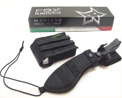 Lunghezza lama 18 cm, larghezza lama massima 5,5cm, lunghezza totale 31 cm. La lama è in ottimo acciaio N690Co al Cobalto, con durezza 58/60 HRC fosfatata. Impugnatura ergonomica realizzata con guancette in forprene nero. Il fodero è di tipo professionale in cordura nera ed attacco Molle con asola per cinturoni regolabile tramite strip. Dotato di un kit completo di sopravvivenza riposto in una custodia di cordura nero, sempre dotato di attacco molle. Il kit è contenuto in una scatola di alluminio impermeabile e comprende un mini acciarino, cotone, matita, fischietto in metallo di emergenza, profilattico, fiammiferi antivento, un piccolo coltello multiuso, una candela, spille da balia, ami da pesca, bussola e carta per scrittura, sega a cavo, benda. Prodotto in Italia. Peso lordo: 975 grammi.