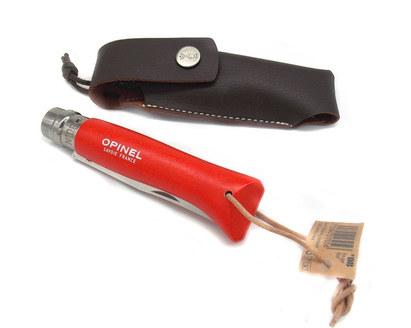 Coltello Opinel inox numero 8 manico rosso con fodero