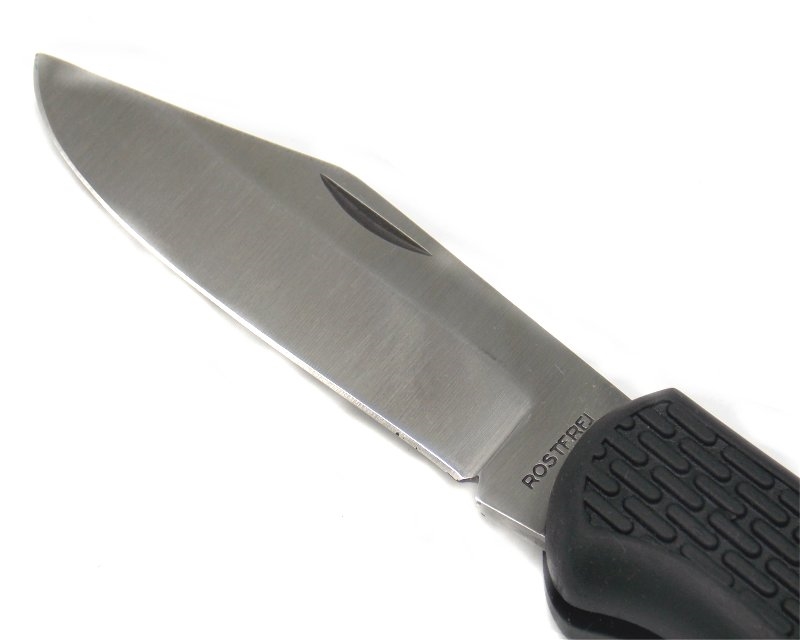 Lunghezza lama 8 cm, larghezza lama massima 2,5 cm, lunghezza totale aperto 20 cm. dotato di blocco lama. Lama in acciaio, manico in polimero nero. Peso lordo: 110 grammi. Prodotto in Italia.