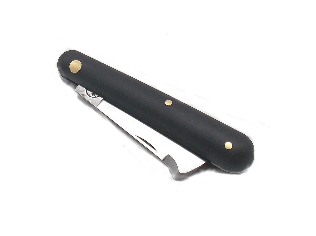 Coltello da giardino. Lunghezza lama 5,5 cm, larghezza lama 1,5 cm, lunghezza totale aperto 17 cm. Manico in polimero nero opaco. Prodotto in Italia. Peso lordo: 56 grammi.