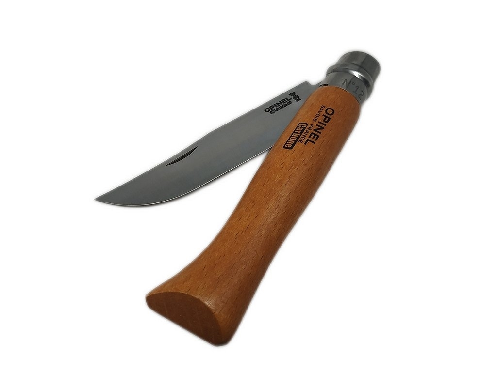 Coltello sportivo. Coltello chiudibile con lama in acciaio al carbonio di 10 cm. Manico in legno chiaro stagionato a forma leggermente anatomico. Lunghezza totale aperto 22 cm, larghezza lama 2 cm. Prodotto in Francia.