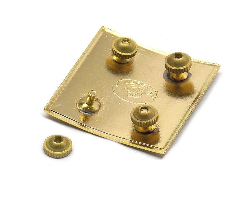 Coppia di gradi per spallina di giacca. Qualifica agente semplice. Chiusura con 4 viti con dado tornito a coppiglia. Forma trapezoidale: lunghezza cm 4,6, larghezza cm 4,1/4,3, spessore mm 1,5. Peso lordo: 64 grammi.