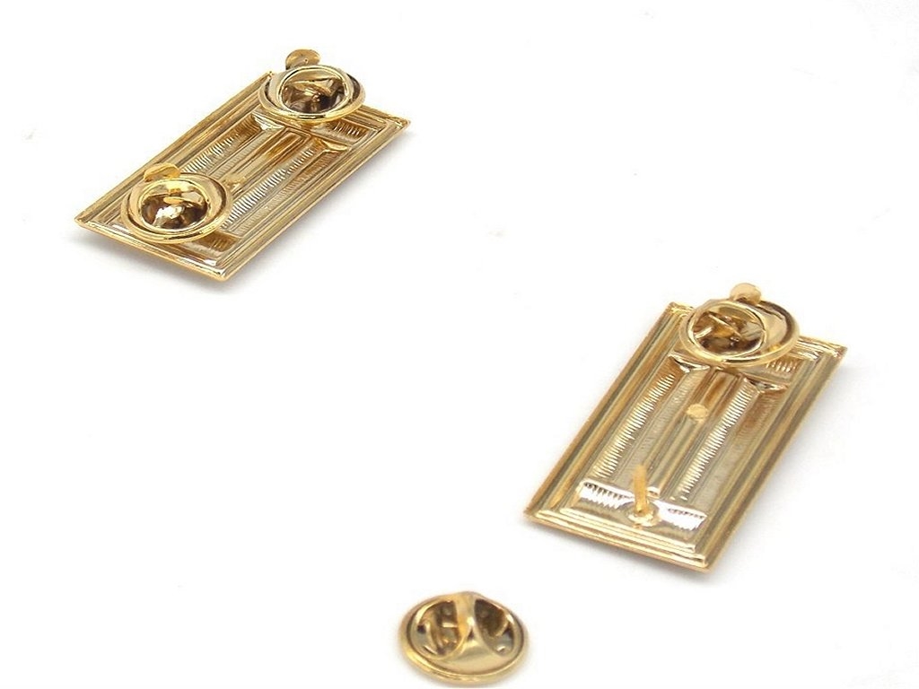 Coppia di alamari in metallo per camicia in colore verde e dorato. Lunghezza 3,8 cm, larghezza 1,8 cm. Dotata di due chiodini a morsetto. Peso lordo: 7 grammi. Prodotto in Italia.