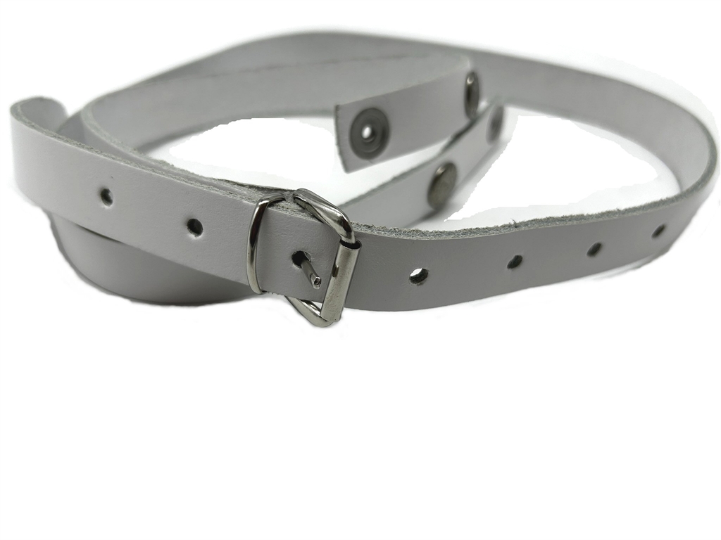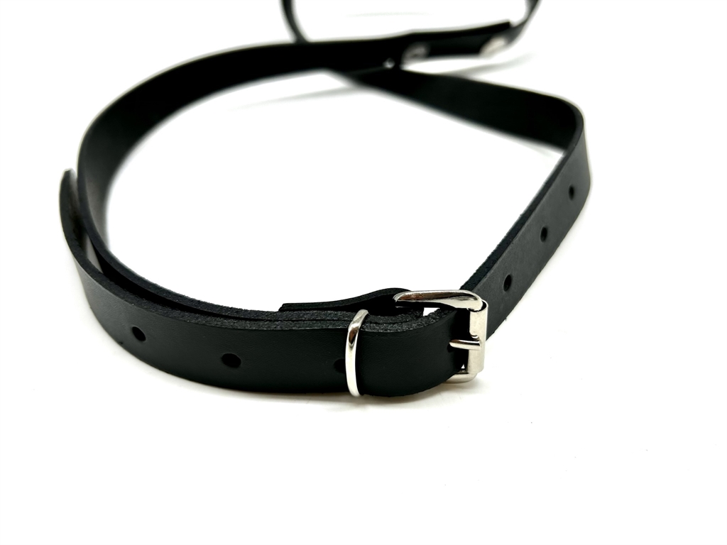 Bretella in cuoio a tracolla regolabile per borsello porta bollettario da vigile, con bottoni a pressione apribili per aggancio agli anelli posteriori del borsello. Larghezza cm 2. Disponibile in colore bianca o nera. Prodotto in Italia.