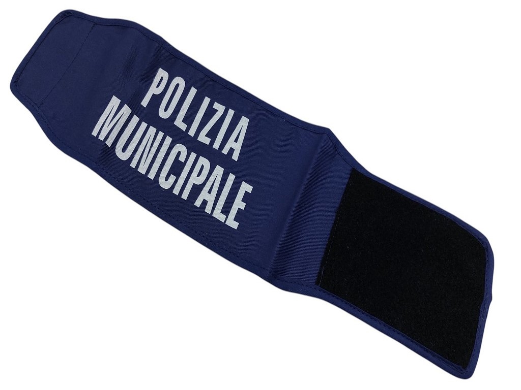 Scritta Polizia Municipale. Misura regolabile con strip. Dimensioni: larghezza 13 cm e lunghezza 50 cm. Peso lordo: 35 grammi. Prodotto in Italia.