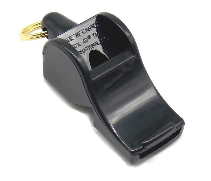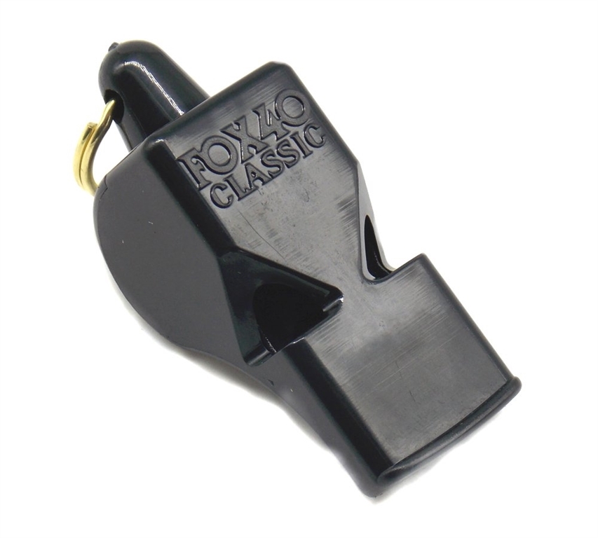 Fischietto brevettato in plastica nera senza pallina. Potenza sonora 115 decibel, si sente fino a 1,4 km di distanza. Il fischietto Fox 40 grazie al suo particolare sistema di uscita di aria a tre vie ( due superiori ed una inferiore ) permette l espulsione della saliva evitando l inceppamento. Misure max: mm 50x19. Dotato di anellino per l aggancio di una cordicella. Peso lordo: 17 grammi. Prodotto in Canada.