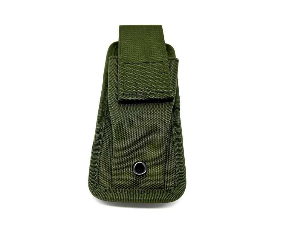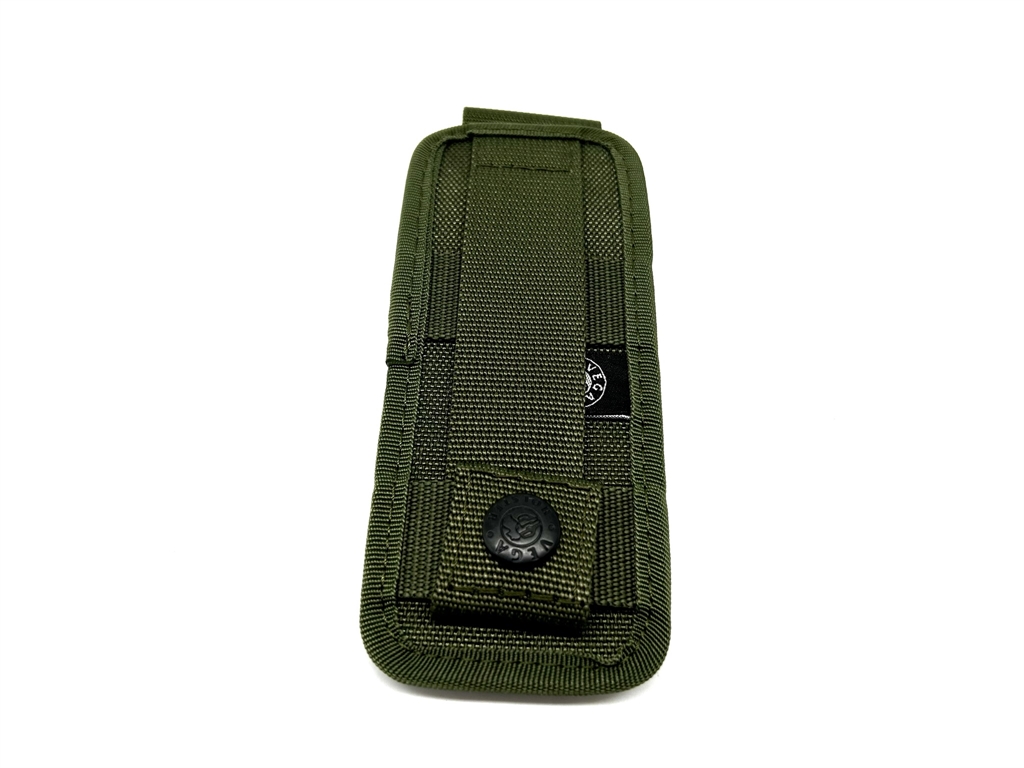 Porta caricatore con doppio uso: a cintura e con sistema modulare per attacco su gilet tattico. Colori disponibili: nero, verde, desert. Passante per cinturoni alti 7 o 8 cm. Lunghezza 15,5 cm. larghezza 6 cm. Peso lordo: 45 grammi. Prodotto in Italia.