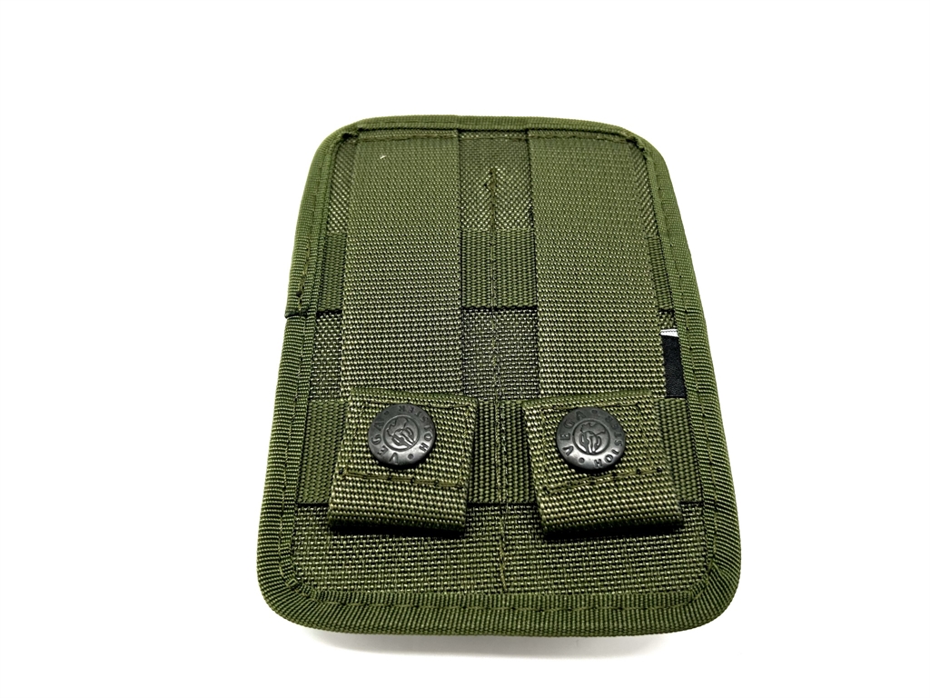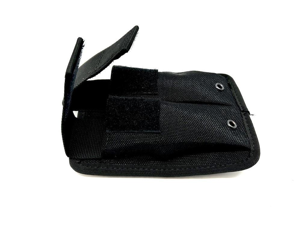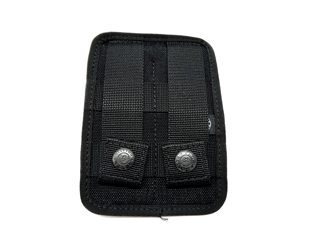 Doppio porta caricatore per pistola. Doppio uso: sistema modulare o cintura. Chiusura a strip regolabile. Colore verde o nero. Peso lordo: 75 grammi. Prodotto in Italia.