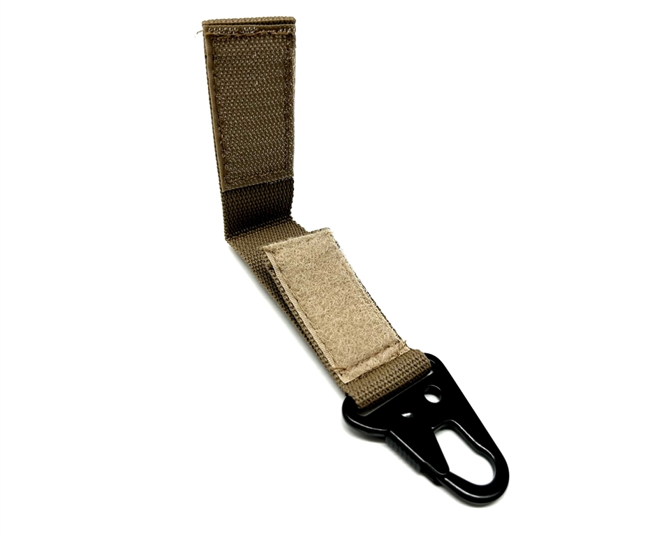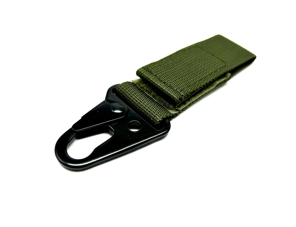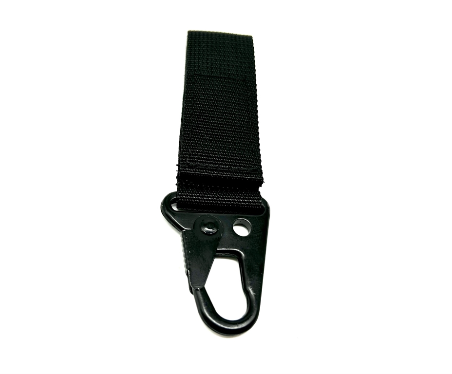 Passante in nylon rinforzato da 5 cm di altezza regolabile con strip a chiusura e moschettone in metallo verniciato antiossidazione con sistema di apertura e chiusura a coccodrillo. Colori disponibili: nero, verde, blu o desert. Dimensioni chiuso compreso moschettone: 12x3 cm. Peso lordo: 35 grammi. Prodotto in Italia.