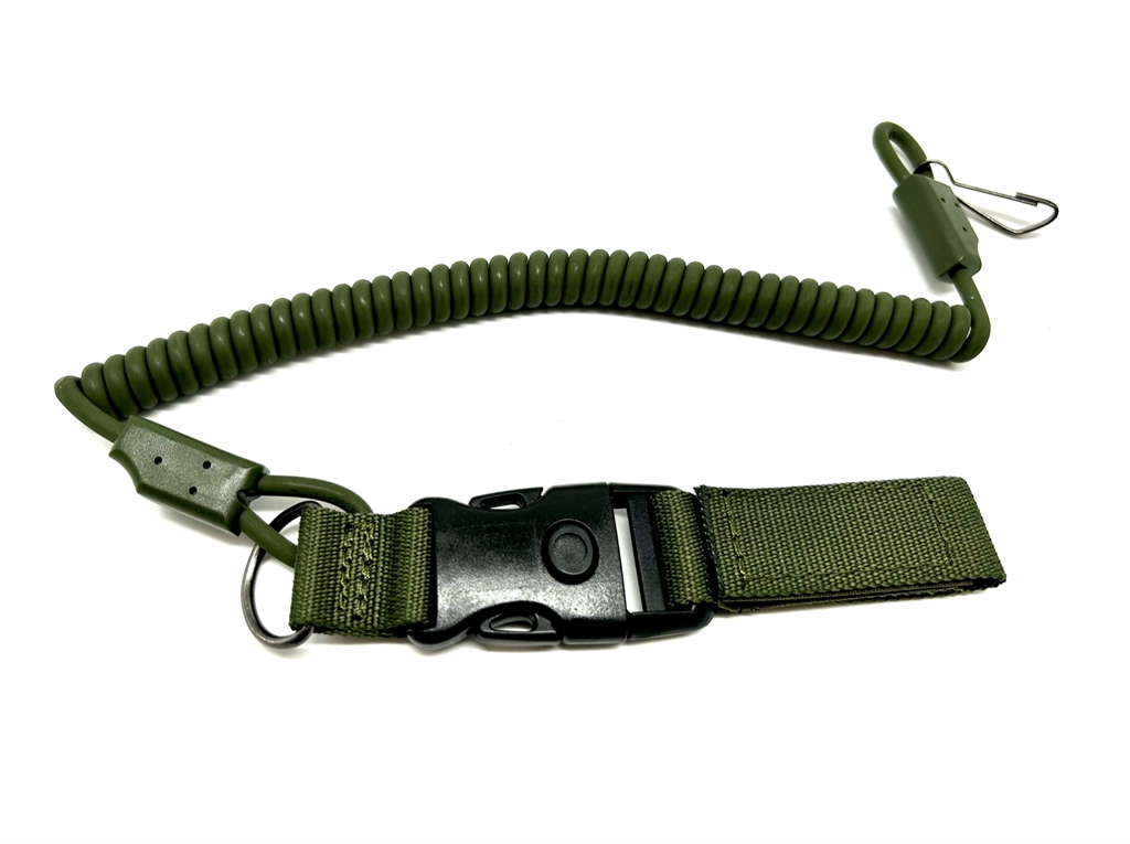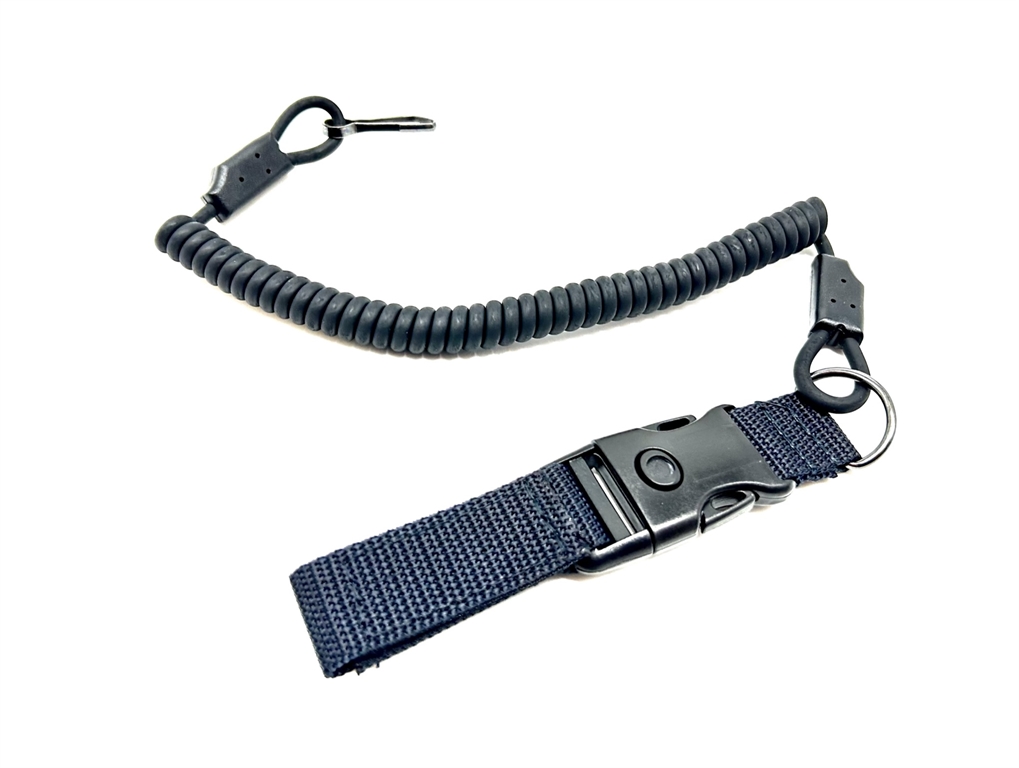 Cordoncino in polimero estensibile di sicurezza a nastro con finali termofusi con passante a nastro con strip per cinture e cinturoni fino a 6 cm di altezza . Pulsante di sicurezza in polimero con doppia chiusura. Lunghezza totale senza estensione: 50 cm. Colori disponibili: nero, blu, verde, desert, bianco. Peso lordo: 80 grammi. Prodotto in Italia.