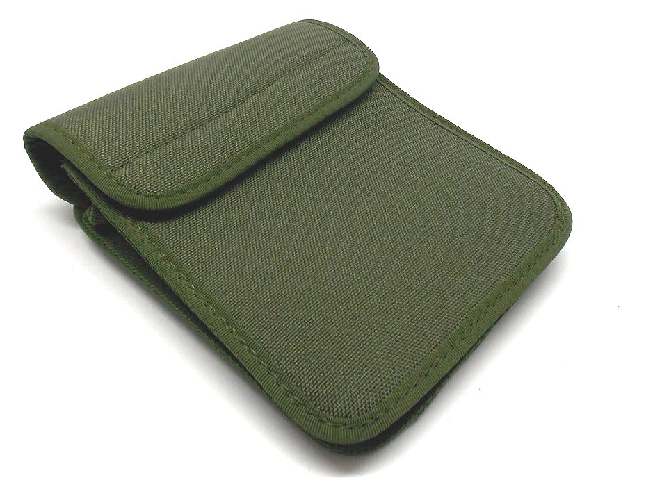 Dimensioni: lunghezza 18 cm, larghezza 15 cm, profondita 4 cm. Chiusura con strip, passante dietro per cintura apribile altezza 6 cm. Colori disponibili: nero, verde. Peso lordo: 130 grammi. Prodotto in Italia.
