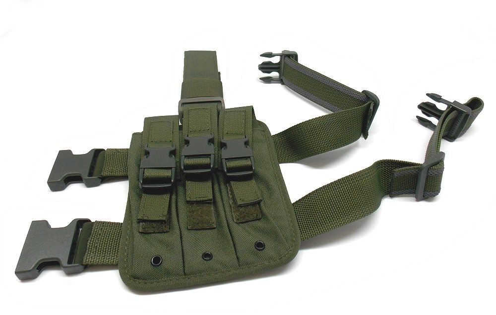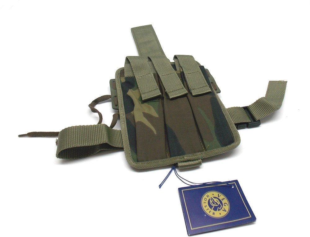 Porta caricatore in cordura con passante lungo da coscia per 3 caricatori. Supporto cosciale amovibile per uso direttamente in cintura. Doppi nastri cosciali antiscivolo. Pattine porta caricatori regolabili in altezza e amovibili. Disponibile nei colori: verde, nero o mimetico. Dimensioni: lunghezza cm 21, larghezza cm 16. Peso lordo: 350 grammi. Prodotto in Italia.