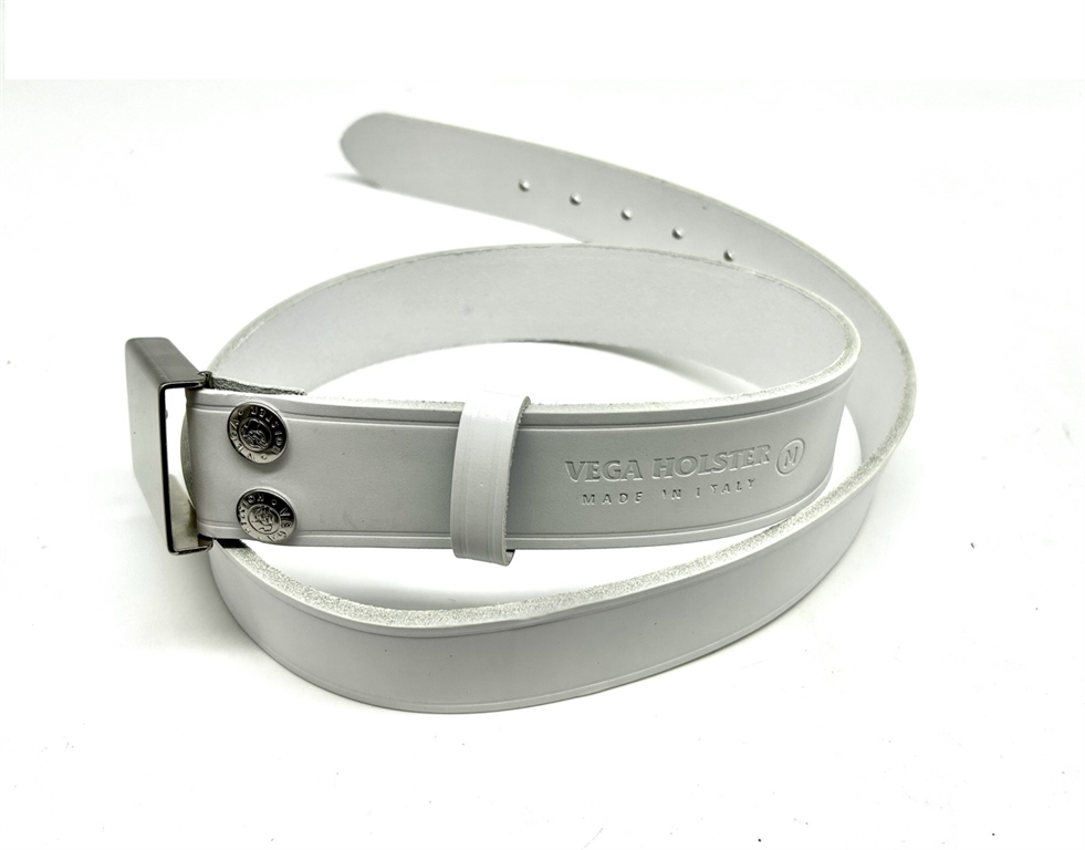 Cinturone in cuoio alto 4 cm, e spesso 3,8 mm con fibbia a cassetta in metallo. Misure disponibili: S=girovita da 80 a 95 cm, M=girovita da 94 a 109 cm, L=girovita da 104 a 120 cm, XL=girovita da 115 a 130 cm, XXL=girovita da 127 a 142 cm. Colore: bianco o nero. Peso lordo: 235 grammi. Prodotto in Italia.